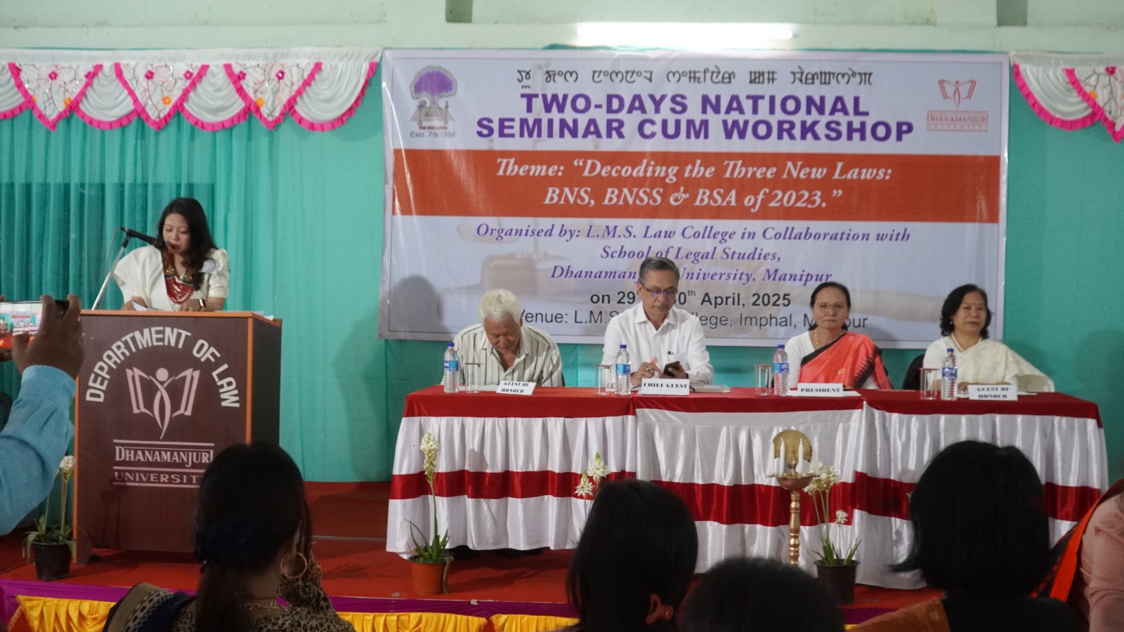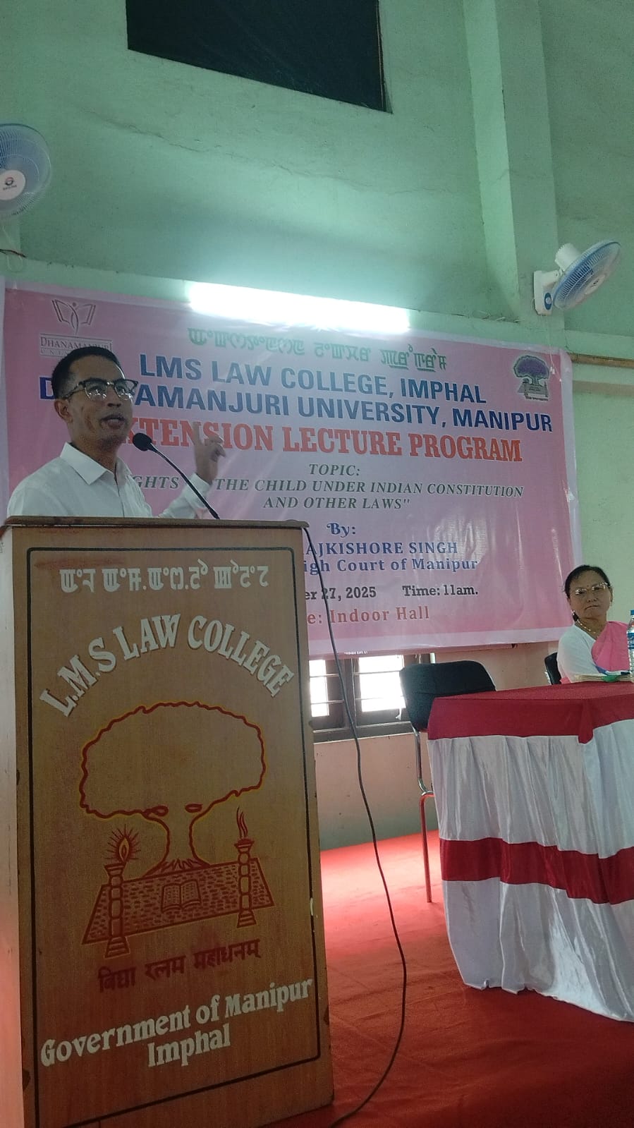 Lairenmayum Sheibyashachi (LMS) Law College was founded on 7th August, 1958, initially named as the Manipur Law College. The then Home Minister Lal Bahadur Sastri, who later became the Prime Minister of India, laid the foundation stone of the LMS law College. The founder principal of the college Lairenmayum Ibungohal Singh, in the name of his father Lairenmayum Sheibyashachi, donated a substantial sum of money for the development of building, infrastructure, library for the institution.